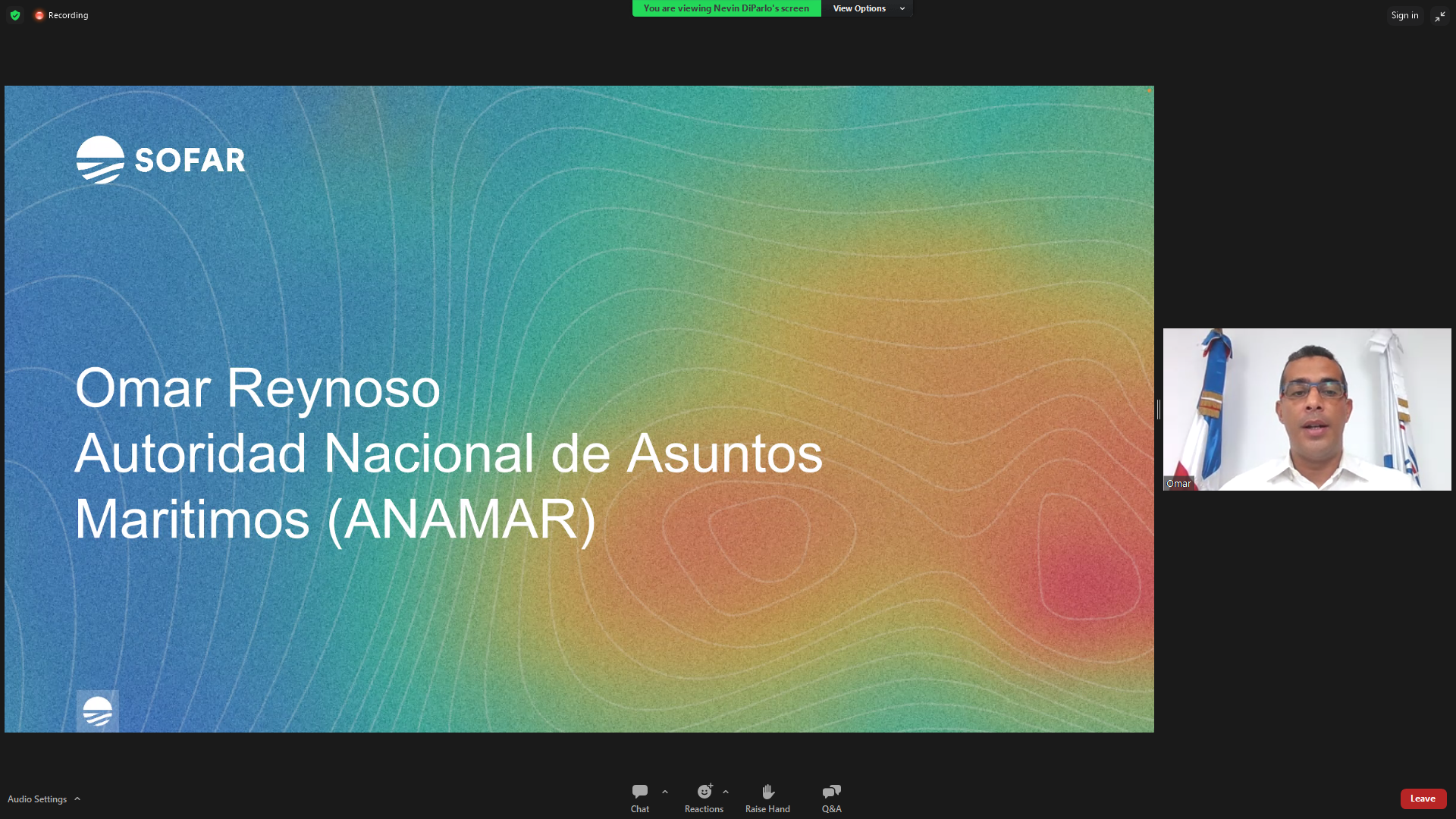La ANAMAR tuvo el honor de ser ponente en el Seminario web titulado “Recopilación de datos oceánicos a escala mediante una red regional de vigilancia de sistemas de detección marina”. Esta ponencia estuvo a cargo del Encargado de la División de Oceanografía y Recursos Marinos, Omar Shamir Reynoso.